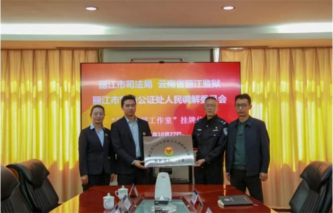 近日,麗江“麗新”調(diào)解工作室正式掛牌成立, 為特殊人群矛盾化解注入法治溫度。(供圖)
