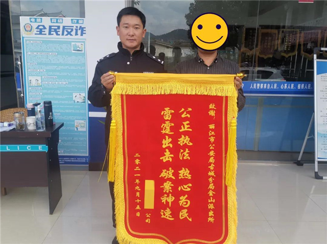 近日,麗江市公安局古城分局金山派出所收到轄區(qū)某建筑公司送來一面“公正執(zhí)法 熱心為民 雷霆出擊 破案神速”的錦旗。