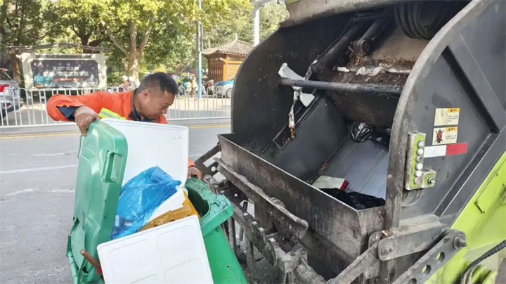 “快來倒垃圾,快來倒垃圾喂,垃圾不亂丟……”在云南麗江的街頭巷尾,每當這首熟悉的童謠響起,就意味著垃圾清運車到了。沿街商戶拎出提前打包好的生活垃圾,有序投放,而垃圾清運車司機張浩也隨之展開一系列規(guī)定動作——停車、操作鏟斗、清運、上車前往下一個清運點,循環(huán)往復。