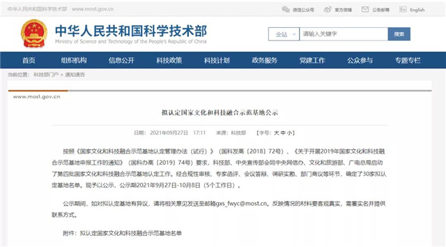 《擬認(rèn)定國家文化和科技融合示范基地公示》