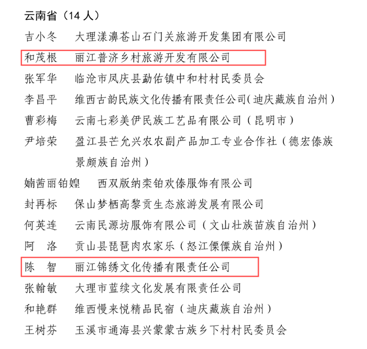2024年度鄉(xiāng)村文化和旅游帶頭人支持項(xiàng)目入選人員名單(云南部分)