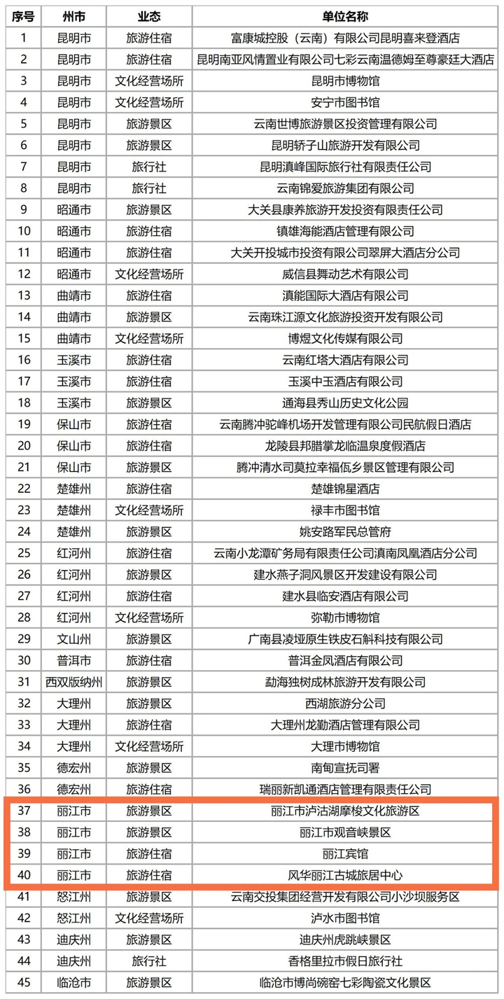 根據(jù)《文化和旅游部辦公廳關(guān)于開(kāi)展〈文明旅游示范單位要求與評(píng)價(jià)〉(LB/T 075-2019)實(shí)施工作的通知》《云南省文明旅游示范單位評(píng)定工作實(shí)施方案的通知》(云文旅辦發(fā)〔2021〕97號(hào))要求,云南省文化和旅游廳按程序組織第三批省級(jí)文明旅游示范單位評(píng)定工作并完成公示,45家單位被評(píng)為第三批省級(jí)文明旅游示范單位。