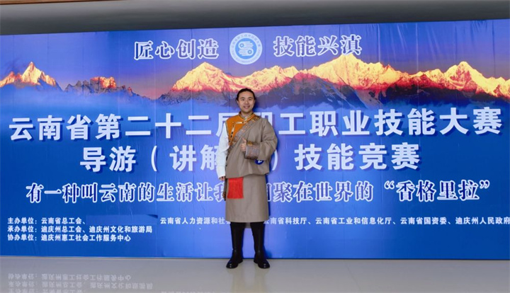 本屆競賽以“匠心創(chuàng)造 技能興滇”為主題,設(shè)置理論考試、講解展示、應(yīng)急處置等全方位考核環(huán)節(jié),匯聚全省各州(市)文旅行業(yè)精英同臺競技。競賽中,周志衡以“雪山下的文化密碼”為主線,深度融合麗江古城街巷肌理、玉龍雪山人文傳說與納西族東巴文化,憑借精準(zhǔn)生動的表達(dá)、富有感染力的情感傳遞,贏得評委團(tuán)好評。