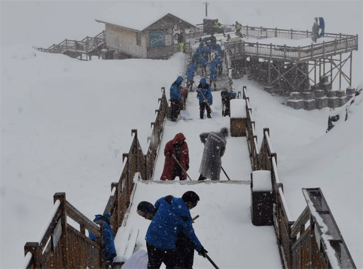 玉龍雪山景區(qū)工作人員積極開展除冰除雪工作。(供圖)