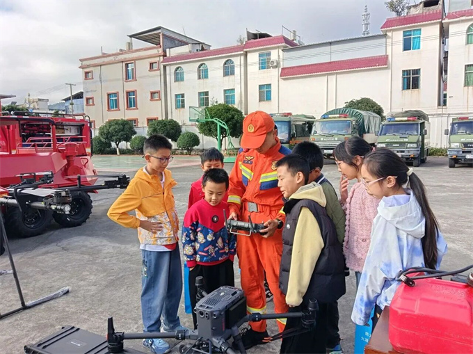 在營區(qū)參觀與裝備體驗(yàn)環(huán)節(jié),消防救援人員帶領(lǐng)同學(xué)們參觀了營房、訓(xùn)練場地,詳細(xì)介紹消防車輛、破拆工具、防護(hù)裝備等器材的名稱、功能及使用場景,并邀請同學(xué)們親手觸摸器材、沉浸式感受消防救援工作的嚴(yán)謹(jǐn)與艱辛。