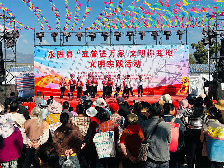 11月18日,永勝縣“五普進(jìn)萬家 文明你我他”文明實(shí)踐集中示范活動(dòng)在片角鎮(zhèn)農(nóng)貿(mào)市場(chǎng)舉辦。