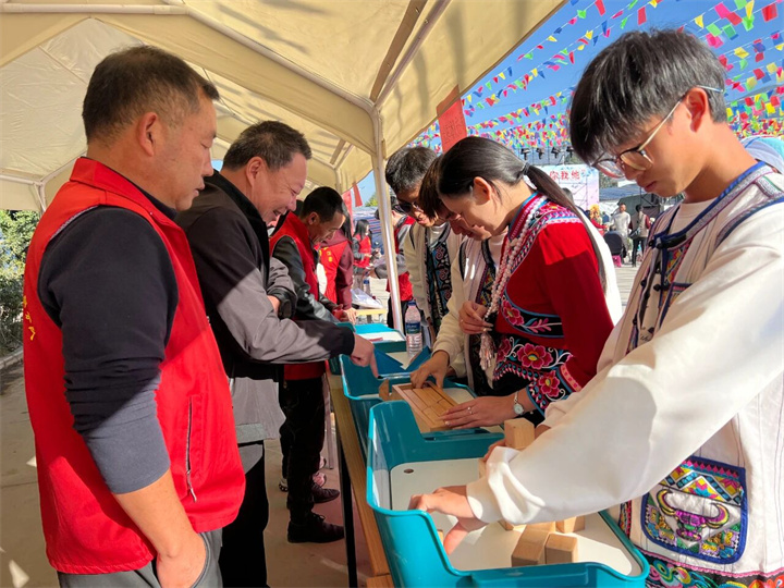 活動(dòng)現(xiàn)場(chǎng)人氣爆棚,1000 余名周邊村民自發(fā)聚集,文藝匯演與游園會(huì)兩大板塊無縫銜接、相互賦能。文藝匯演舞臺(tái)前座無虛席,縣級(jí)文藝隊(duì)與片角鎮(zhèn)村級(jí)文藝隊(duì)聯(lián)袂獻(xiàn)上的快板《移風(fēng)易俗新風(fēng)贊》、歌舞《民族團(tuán)結(jié)一家親》等節(jié)目,緊扣 “五普” 主題,用方言 + 普通話雙語演繹,將鄰里互助、文明出行、垃圾分類等內(nèi)容融入其中,每場(chǎng)表演結(jié)束后都響起雷鳴般的掌聲;游園會(huì)五大關(guān)卡前排起長隊(duì),“法制闖關(guān)”“科技體驗(yàn)”“繞口令挑戰(zhàn)”“火眼金睛辨真?zhèn)巍薄拔拿鞫Y儀知識(shí)闖關(guān)”累計(jì)吸引 800 余人次參與,真正實(shí)現(xiàn)了“人人參與、人人收獲”。