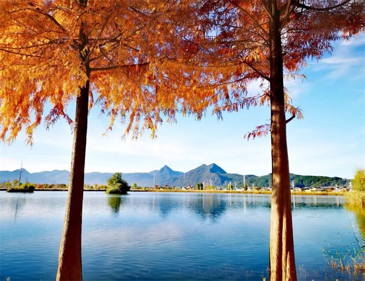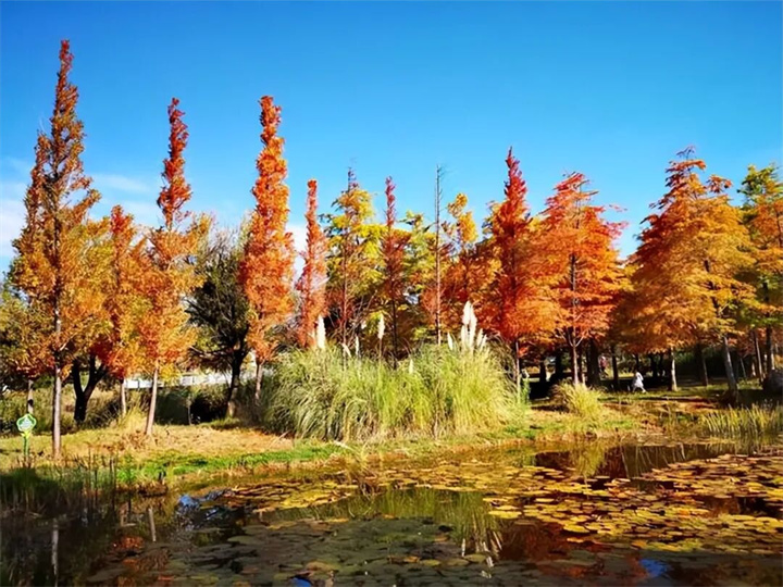 與岸邊絢爛的水杉形成絕妙呼應(yīng)