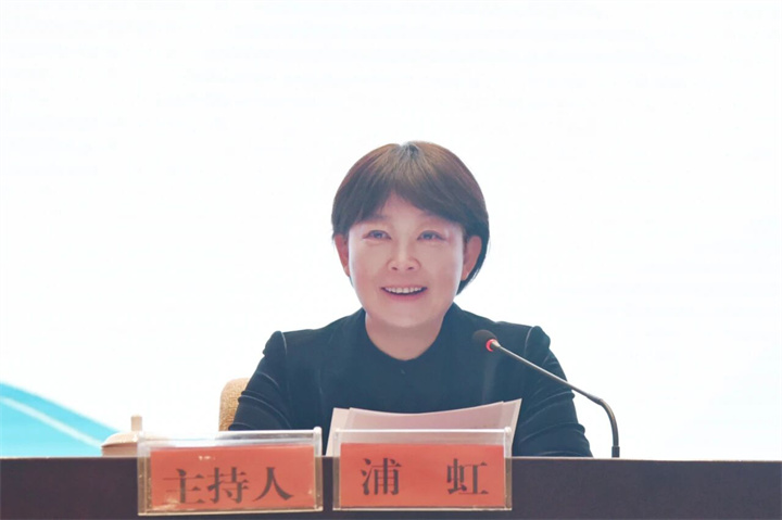 11月18日,浦虹主持報(bào)告會(huì)。(麗江融媒記者 和麗芬 攝)