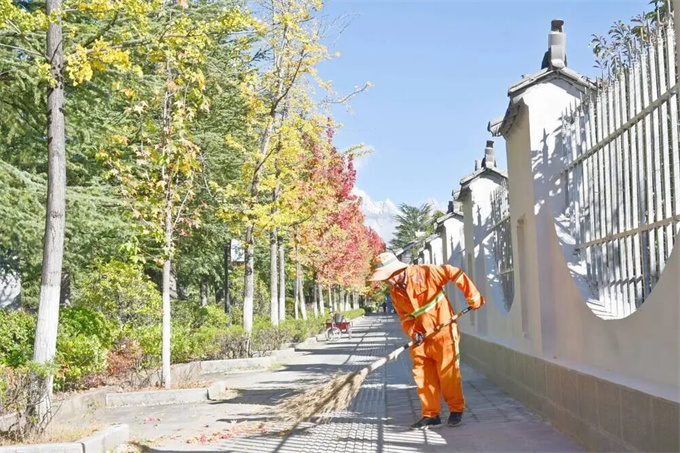 小區(qū)外圍的變化,環(huán)衛(wèi)工人歐先感受最深。“以前圍墻上爬滿藤蔓,枝條垂下來擋了一半人行道,打掃起來很費(fèi)勁。”如今,小區(qū)的圍墻、大門重新修復(fù),籬笆被清除,人行道變得整潔寬敞?!艾F(xiàn)在清掃起來方便多了,路過的居民也說看著舒服。”歐先激動地說,“你看,現(xiàn)在一眼還能看到遠(yuǎn)處的玉龍雪山,打掃衛(wèi)生心情也很愉悅?!?/p>