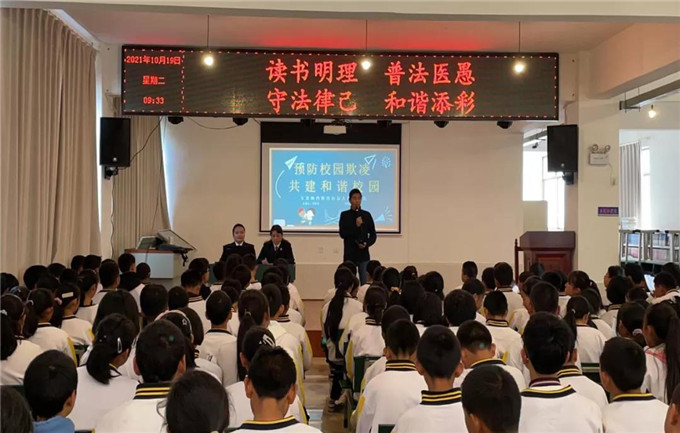 抓好未成年人的法治教育,是預(yù)防和減少違法犯罪,促進校園和諧穩(wěn)定發(fā)展的重要舉措,通過此次活動,告誡學(xué)生要杜絕校園欺凌行為,學(xué)會對校園欺凌說不,在日常的學(xué)習(xí)、生活中與同學(xué)相處更多的是學(xué)會尊重他人,包容他人,用合理、合法的方式解決矛盾糾紛,守法律己,樹立學(xué)法、懂法、用法的意識。(來源:玉龍政法)