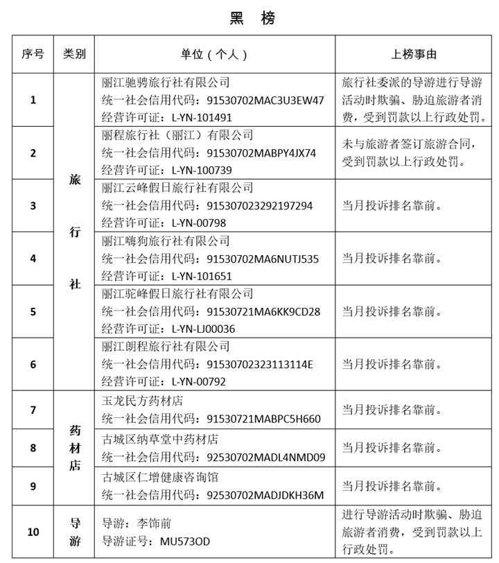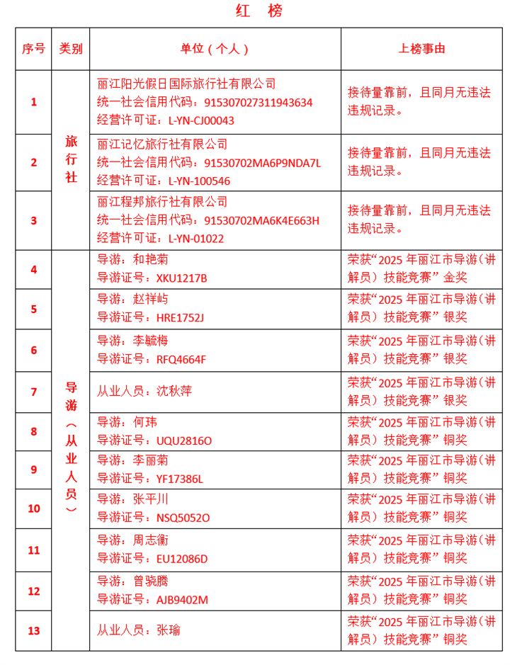麗江文旅“紅黑榜”公布